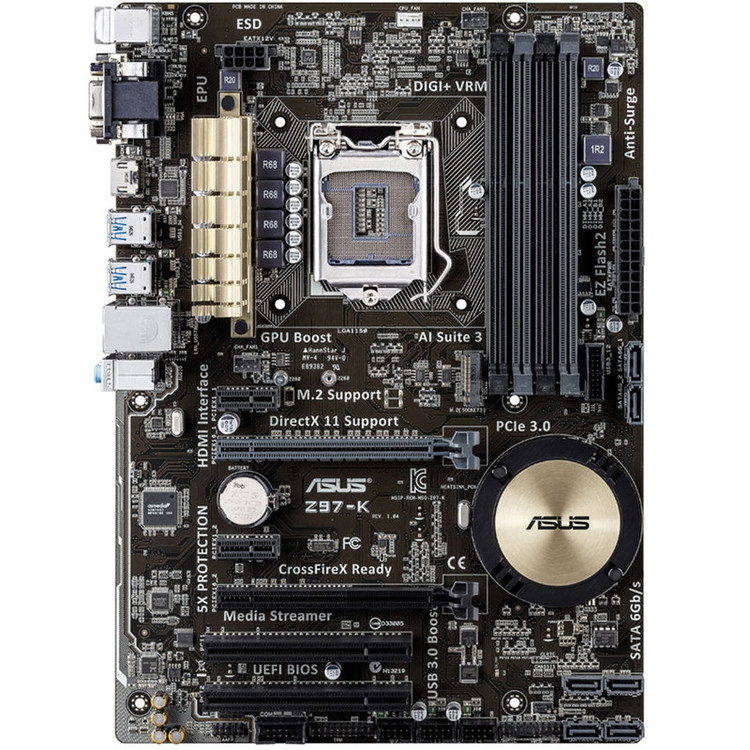 مادربرد ASUS Z97-A از شرکت ایسوس دارای ابعاد 21 × 30 سانتیمتر است که این ابعاد یادآور فرم فاکتور ATX برای ما است. فرم فاکتور ما را برای انتخاب یک کیس مناسب برای مادربردمان راهنمایی میکند. پس برای مثال ASUS Z97-A مناسب برای کیس است که قابلیت پشتیبانی از ابعاد فرم فاکتورهای ATX را داشته باشد. مادربرد ASUS Z97-K مجهز به چیپست Z97 شرکت اینتل است و قابلیت پشتیبانی از پردازندههای 5th / New 4th / 4th Generation Core / Core i7 / i5 / i3 / Pentium / Celeron LGA1150 را دارد. Z97 قادر به پشتیبانی از RAID برای حافظههای ذخیرهسازی است. این یک مزیت خوب برای یک مادربرد به حساب میآید؛ مزیت این فناوری زمانی قابل درک است که حفاظت دادههایمان و پشتیبانیگیری از آن برای ما مهم ارزیابی شود. این چیپست توانایی پشتیانی از RAID 0 , RAID 1 , RAID 10 , RAID 5 دارد. تعداد چهار اسلات حافظه از نوع DDR3 روی این مادربرد قرار گرفته و به دلیل پشتیبانی از قابلیت دو کاناله، شما میتوانید تا 32 گیگابایت حافظه با استانداردهای 3200 / 3100 / 3000 / 2933 / 2800 / 2666 / 2500 / 2400 / 2200 / 2133 / 2000 / 1866 / 1600 / 1333 مگاهرتز را برای بازدهی هرچه بیشتر استفاده کنید. 4 عدد اسلات PCI Express x16 با پشتیبانی از فناوری تغییر چیدمان SLI و Crossfire روی مادربرد قرار داده شده است تا کارتهای گرافیکی خود را در آن قرار دهید. از اسلاتهای دیگری که روی برد دیده میشود PCI Express x1 است که برای ارتباط با کارتهای توسعه قابل استفاده هستند. چهار کانکتور SATA3.0 برای دریافت داده از هارد دیسک و درایوهای نوری در کنار کانکتورهایی مثل کانکتور M.2 روی Z97-A قرار گرفته است. در پنل پشتی یک عدد درگاه USB3.0 با سرعت 10 گیگابیت بر ثانیه و سه عدد درگاه USB2.0 دیده میشود. با بهرهگیری از 3 نوع پورت انتقالدهنده تصویر میتوانید نمایشگرهای خود را با کابلهای موجود متصل کنید. خروجی صدای مادربرد از نوع 8 کاناله است که با استفاده از کارت صدای ALC892 شرکت Realtek امکان شنیدن صدایی فراگیر را در اختیار مصرفکننده قرار میدهد. این مادربرد هم همانند اکثر مادربردها از کارت شبکه Gigabit Ethernet با سرعت 10/100/1000 پشتیبانی میکند. این مدل در بیشتر اطلاعات با مدل Z97-K ایسوس شباهت زیادی داشته و در پردازندههای پشتیبانی شده تعداد اسلاتهای PCI Express با هم تفاوت دارند. این مادربرد به پورت خروجی صدای S/PDIF مجهز بوده که قابلیت انتقال صوت از طریق نور را به شما میدهد. ایسوس قابلیت پشتیبانی از فناوری طراحی Q-Design و EZ DIY خود را روی این محصول قرار داده است. در جعبه این محصول 3 رابط SATA3.0همراه با دفترچه راهنما و دیسک درایورها خدمت شما توسط فروشگاه اینترنتی دیجیکالا تقدیم میگردد.